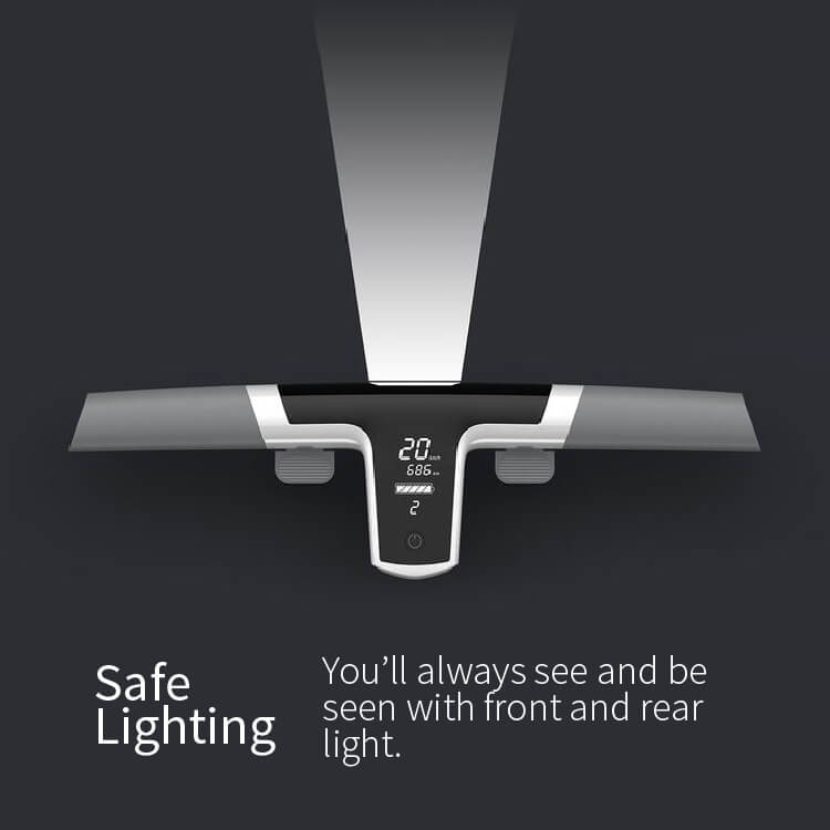 One gentle push on the ergonomically optimized lever and the dual electronic anti-lock brakes bring you to a safe, steady stop. Both on our accelerator and brakes, we’ve built variability into our controls so pushing down further increases their action. Almost every other scooter we tested are binary in their action—either all on or all off—making for a jarring, jerky, unnerving ride. And no one likes to get jerked around.