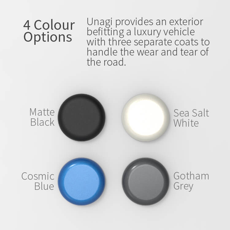 Run your hands over Unagi and you’ll instantly notice the perfect finish. Unagi provides an exterior befitting a luxury vehicle with three separate coats including a laminate and a high-abrasion resistant paint to handle the wear and tear of the road. And most importantly, our scooters will never rust. And that high-tech paint comes in four vivid, stylish colors. So what color is personal freedom, anyway? You decide.