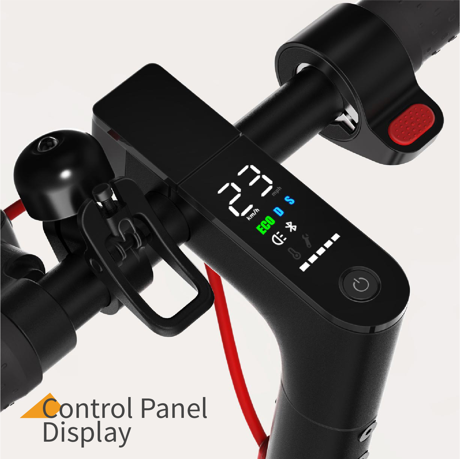 A 300W motor propels the e-scooter to a max speed of 25km/h. 474Wh high capacity battery with a maximum travel range of up to 45km under specific conditions.